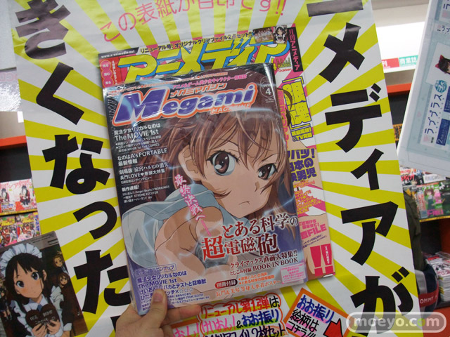 アニメディアが「2010年 04月号」から、紙面サイズがA4変形版にサイズアップするみたいで、とらのあなAに告知ポスターが掲示されていました!ポスターサイズが原寸かはわかりませんが、比較したところ、メガミマガジンよりも大きかったです。