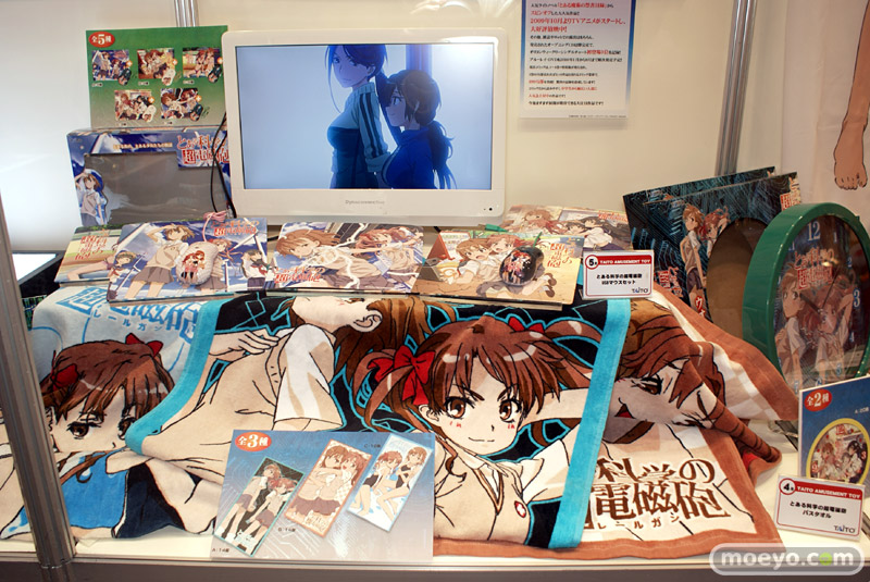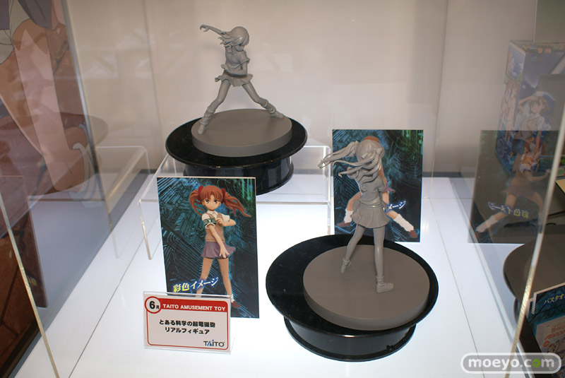 「AOU2010アミューズメント・エキスポ」のタイトーブースより、「とある科学の超電磁砲 リアルフィギュア」のサンプル展示の様子をお伝えします。美琴と黒子の「添い寝シーツ」などのグッズの展示も!