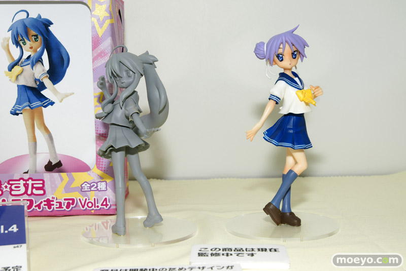 「AOU2010アミューズメント・エキスポ」にて展示されていた「らき☆すた エクストラフィギュア Vol.4」。ラインナップは夏服セーラーに身を包んだ「泉こなた」「柊かがみ」の2種。それぞれの髪型がポニーテールです!おだんごです!