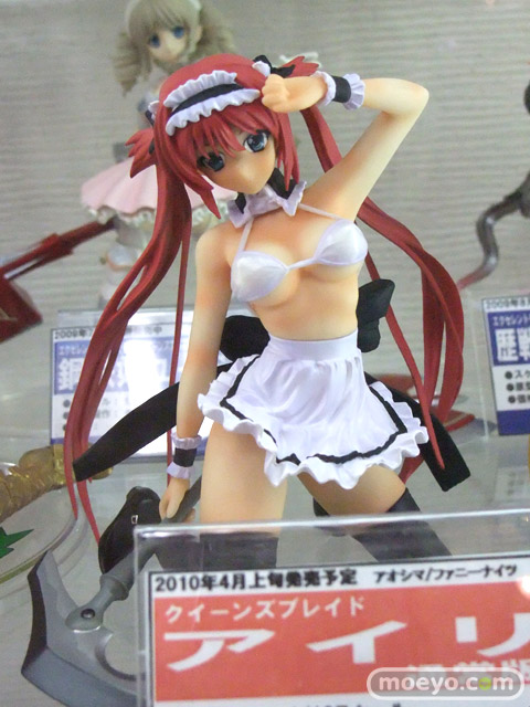 アオシマ「クイーンズブレイド アイリ」が発売!商品説明によると『メイド服を脱いだ、服はエプロンだけというフィギュアです!』というもの。ブラはキャストオフ可能で、宇宙船では、ブラキャストオフ後のサンプル展示を開始していました!
