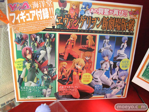 ヤングエースの2010年6/7月号にそれぞれ付録する、以前の付録イラストを立体化した、海洋堂製作のヱヴァンゲリヲン新劇場版:破「レイ/アスカ プラグスーツVer.2」のサンプルが、海洋堂HLで展示!ケツのレイ、股間のアスカといったポーズ!