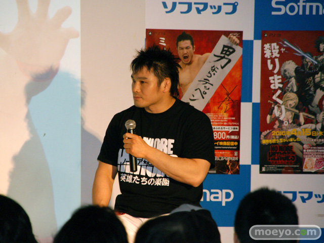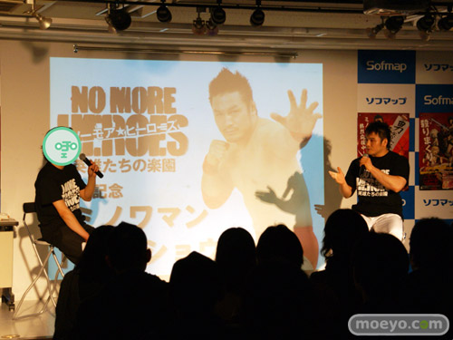 PS3/Xbox360「ノーモア★ヒーローズ 英雄たちの楽園」が4月15日に発売となり、その発売記念として、ソフマップAM館8F イベントスペースで、宣伝部長のミノワマンのトークショーも開催!そのミノワマントークショーの様子も合わせて!
