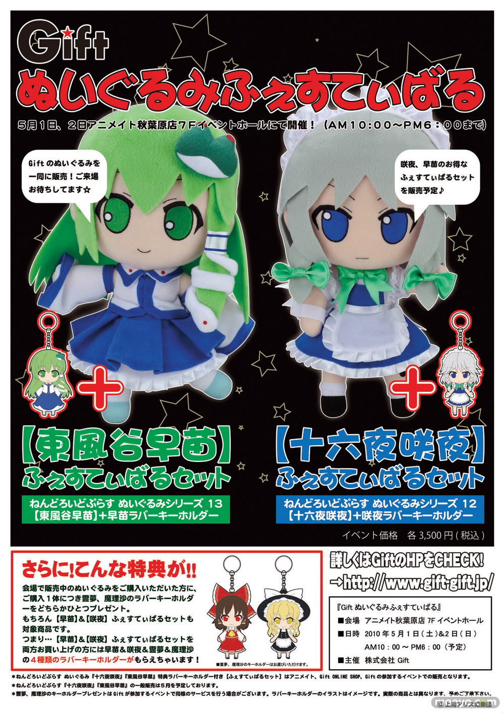 ※「東風谷早苗」「十六夜咲夜」ふぇすていばるせっとをご購入の方にもプレゼント!