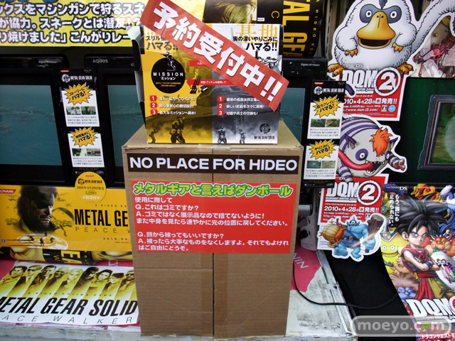PSP「メタルギア ソリッド ピースウォーカー」が4月29日発売予定ですが、ソフマAM館に「メタルギアと言えばダンボール」とした、ダンボールのPOPが店頭で掲示。「中身を見たら速やかに元の位置に戻してください。」とあったので見てみました。