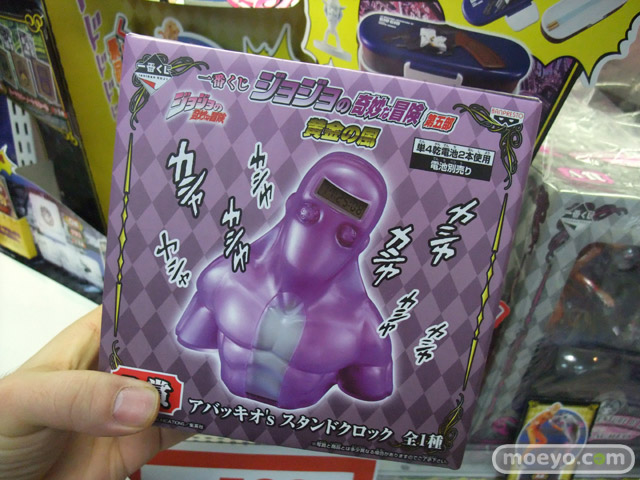 色々な店舗で人気っぽいものをお聞きしたところ、D賞「アバッキオ’sスタンドクロック」が人気みたいで、某店の店員さんによると、それがでるまで数十回引いた方もいるとか。
