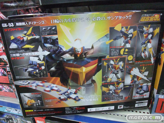 全高約250mmの大迫力!超合金魂でカムヒア!ダイターン3!ダイターン3の三形態(ダイターン3・ダイファイター・ダイタンク)変形を再現。武器類も「ダイターンファン」などを中心に豊富に付属し、劇中イメージを再現できます。また主人公:破嵐万丈がダイターン3に乗り込む際に使用する愛車「マッハパトロール」のミニカーモデルが付属。
