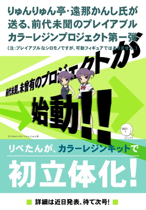 moeyo.comで連載中の「フィギュアのフィーたん」から、つるぺた・ツインテ・ツンデレ娘のリペたんがりゅんりゅん亭・遠那かんし氏の手によってカラーレジンキットとして悲願の初立体化!