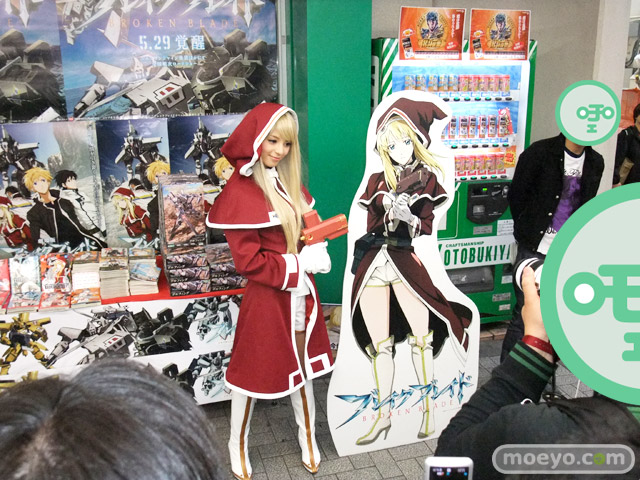 5月29日より公開開始された、「劇場版ブレイクブレイド」の第一章の宣伝で、登場キャラクター「シギュン」の、ミス学習院大学なコスプレさんが、先週に引き続き、コトブキヤラジオ会館店頭に登場!ものすごい人だかりとなっていました!