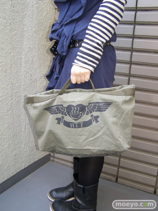 HTTロゴとキャラクターの名前がさりげなく入ったミリタリー調のトートバッグです。