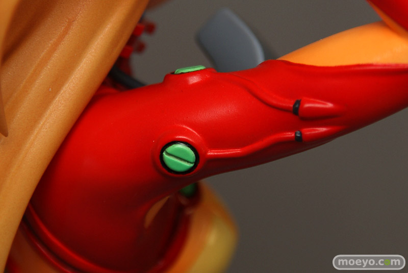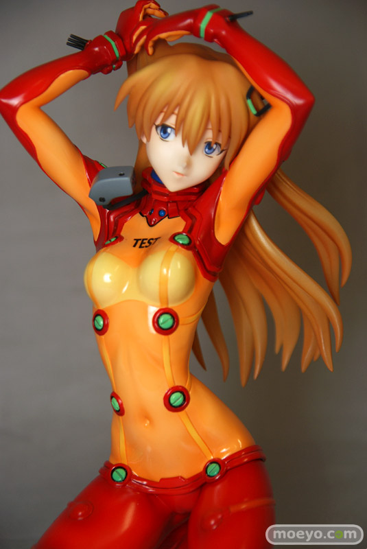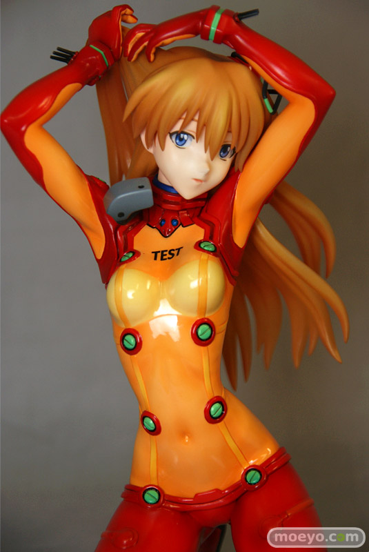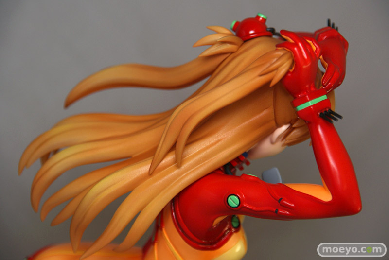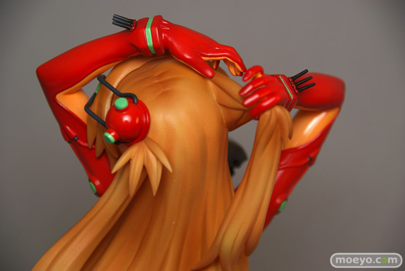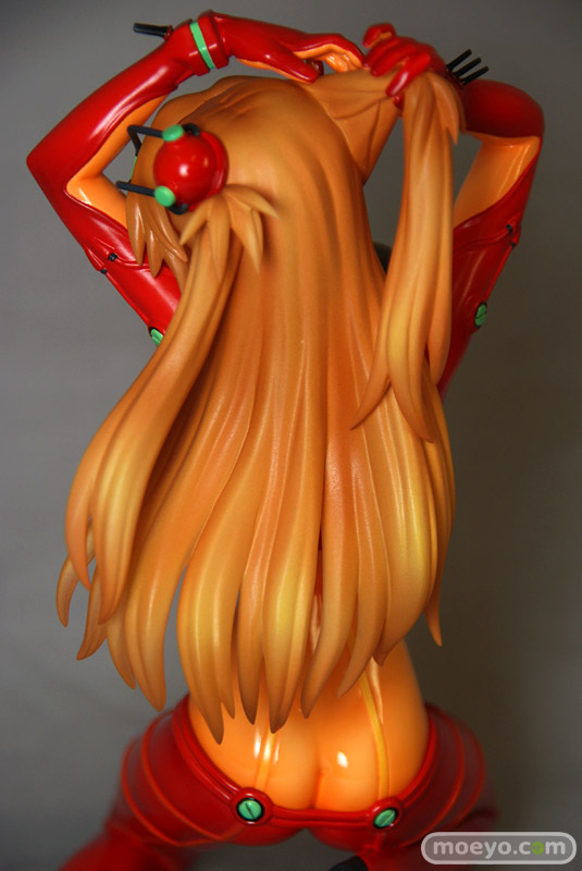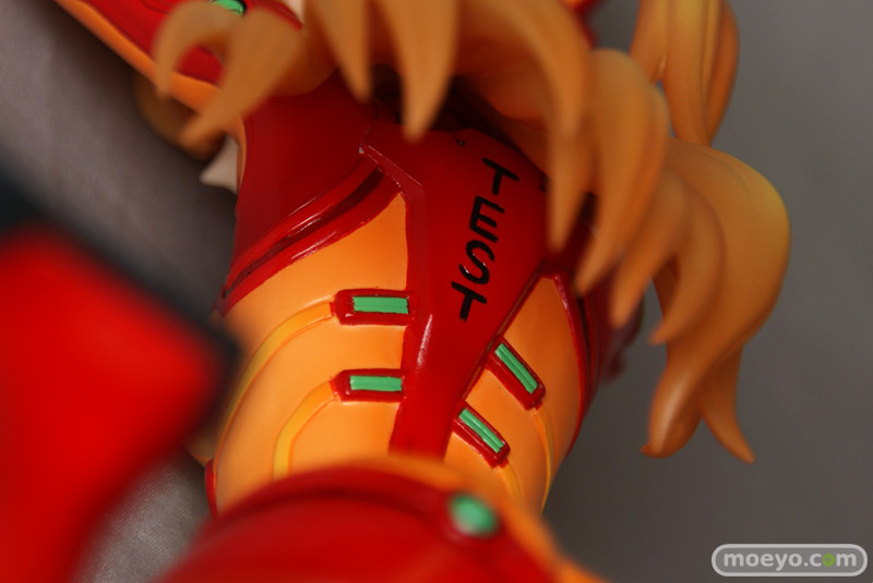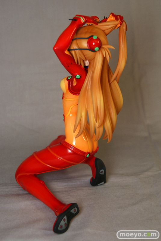 テスト用プラグスーツの最大の特徴ともいえる「オレンジの透明部分」は他の部分と塗装の質感を変更したり、腹部や背中の陰影やディテールを丁寧に造型・立体化することで「透明感」を表現しました。もちろん胸に記載された「TEST」の文字や、肘の内側や手首の突起物等、細部まで忠実に立体化。さらにスーツのグリーン部分は蛍光塗料で塗装。ブラックライトをあてると、ぼんやりと幻想的に光ります。髪はクリアー素材に直接塗装を施すことにより、アスカの美しい髪を再現しました。原型師は「綾波レイ ~プラグスーツVer.~」(サンプルレビュー)や「式波・アスカ・ラングレー ~プラグスーツVer.~」(PVCサンプルレビュー)、「真希波・マリ・イラストリアス ~プラグスーツVer.~」(サンプルレビュー)を手がけた白髭創。白髭創の得意とする繊細かつ流麗な造型をお楽しみ下さい。スケールは1/6なので、前述した商品と同スケールでディスプレイできます。壽屋が自信をもってお送りするこの商品、是非あなたのコレクションに加えてはいかがでしょうか。