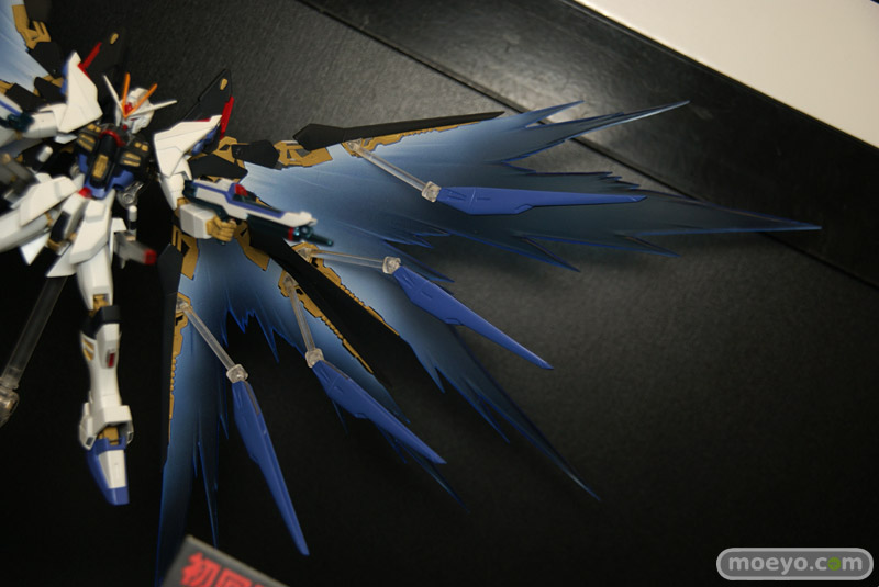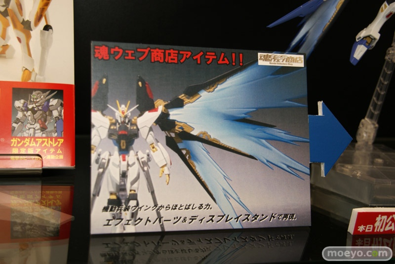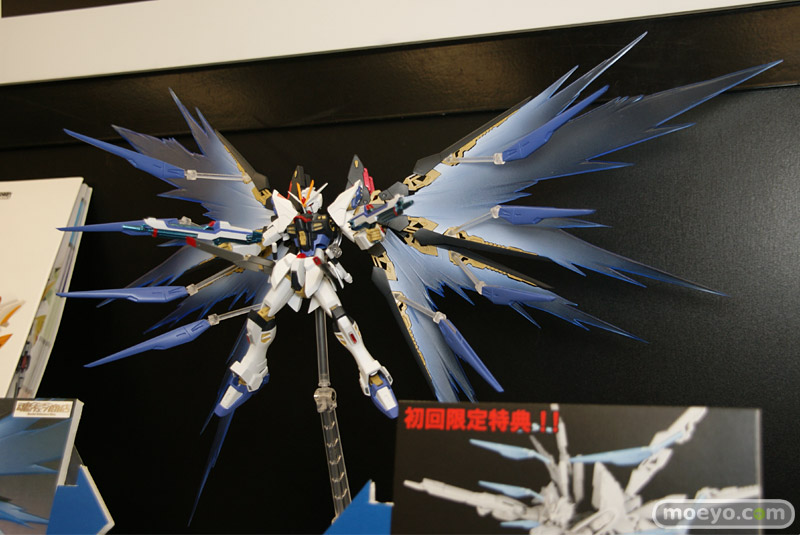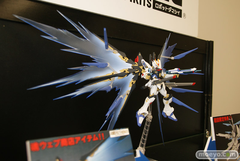 「超合金新ブランド発表会」の会場で、バンダイ「ROBOT魂〈SIDE MS〉 ストライクフリーダムガンダム」のサンプルが展示!初回生産限定「ハイマットフルバースト用ジョイントパーツ」が付属!魂ウェブ商店で専用アイテムの販売も!