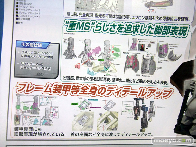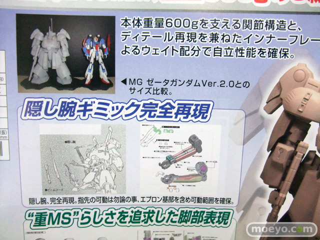 ガンプラ30周年公式サイト上でのMG商品化希望MSアンケートで堂々の2位を獲得したジ・Oが登場!全高248mm、本体重量はなんと600g!このS 型大型キットを支える関節構造と、ディテール再現を兼ねたインナーフレームによるウェイト配分で自立性能を確保。そして隠し腕ギミックは完全再現!指先の可動はもちろんの事、エプロン基部を含め可動範囲を確保。重MSらしさを追及した密度感、骨太感のある脚部表現。首の座面など全身に渡ってディテールアップ!
