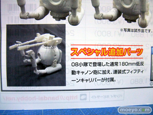 ファーストガンダム版をイメージしたスタイルでボールの2個セットが登場!08小隊で登場した通常180mm低反動キャノン砲に加え、連装式フィフティーンキャリバーが付属。カメラはクリアパーツで付属。アーム部分が可動。