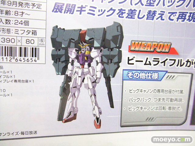 「劇場版 ガンダム00」から驚愕のボリュームでラファエルガンダムが登場!ビックキャノン(大型バックパック)のクロー展開ギミックを差し替えで再現。ビックキャノンは回転、可動式。ビックキャノン専用台座が付属。