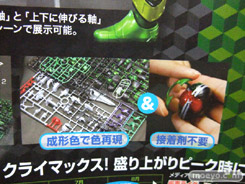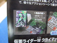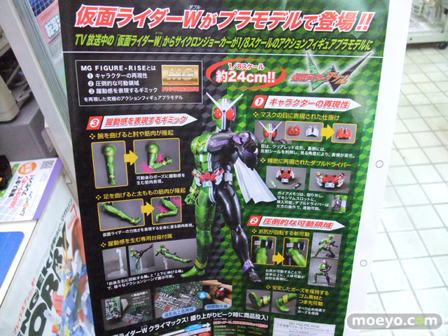 『TV放送中の「仮面ライダーW」からサイクロンジョーカーが1/8スケールのアクションフィギュアプラモデルに』という、バンダイ「MG FIGURERISE 仮面ライダーW サイクロンジョーカー」の店舗向けパンフレットを、ホビーシティで見せて頂きました!