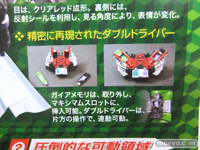 ガイアメモリは、取り外し、マキシマムスロットに、挿入可能。ダブルドライバーは、片方の操作で、連動可動。