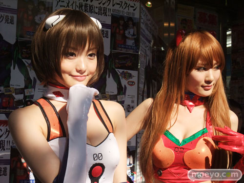 アキバのアニメイト店頭にて、EVA RACINGのレースクイーンのお二人が、個人スポンサー参加アピールのため、レイ&アスカのコスプレレースクイーン姿で登場!個人スポンサー特典のひとつ「綾波レイレースクイーンフィギュア」も初お披露目!