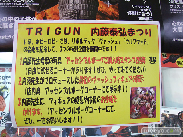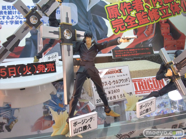 『原作者・内藤泰弘氏の完全監修』という、海洋堂 リボルテックヤマグチ トライガン「ヴァッシュ・ザ・スタンピート」「ニコラス・D・ウルフウッド」の2種が発売!海洋堂ホビーロビーでは、大量のサンプルを展示していた他、旧作品の展示も!