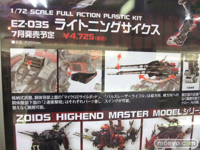 コトブキヤ「ゾイド EZ-035 ライトニングサイクス」のサンプルが、KOTOBUKIYAで展示!『機体各部のエッジの効いた装甲と赤いフィンによって「攻撃的なフォルム」を忠実に立体化』というもの!サンプルは同時発売予定のメッキパーツ仕様!