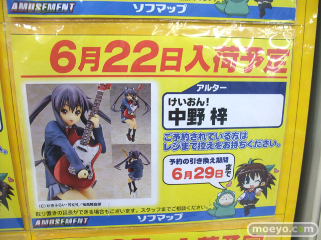 ソフマップAM館4Fの新作フィギュア入荷予定表が更新されていました!それによるとアルター「けいおん! 中野梓」は6月22日入荷予定!他、メガハウス「”STRONG EDITION”ルフィ」等、掲示されていた予定をまとめましたのでどうぞ!