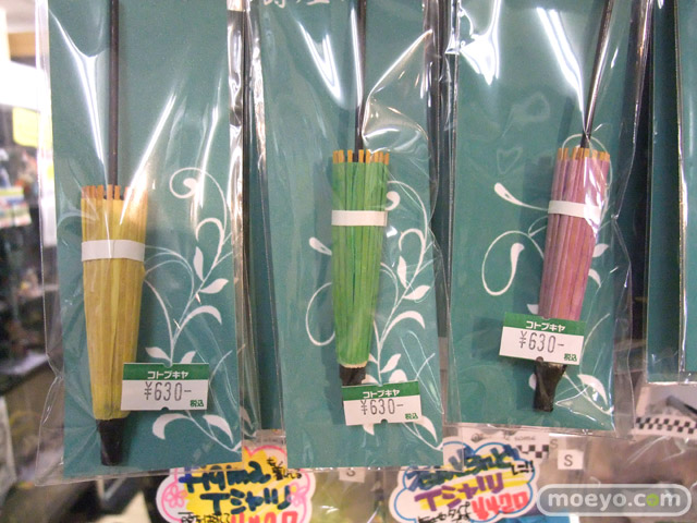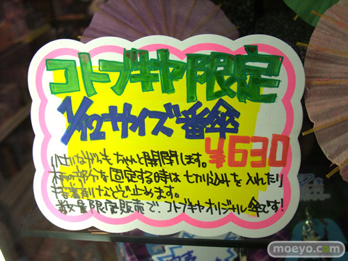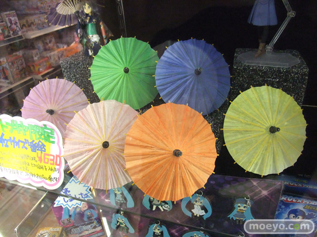 コトブキヤ限定で販売されている「1/12サイズ 番傘」に、一気に6色のカラバリが新発売!これはPOPによると「小さいながらもちゃんと開閉します。」という、figmaなどにぴったりのサイズの番傘で、セイバーに持たせたサンプルなども展示!