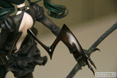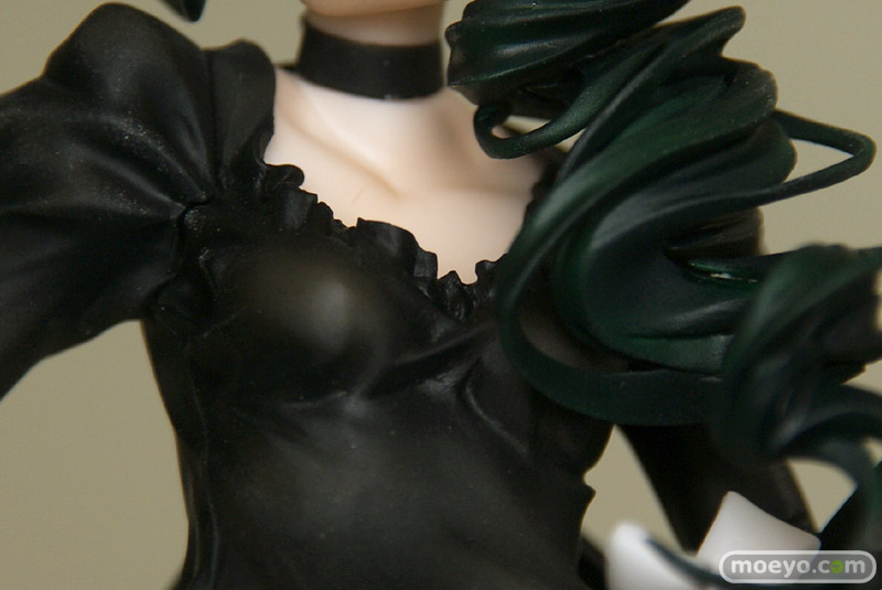 漆黒の服装の中、大きく開いた背中の白さが引き立っています!