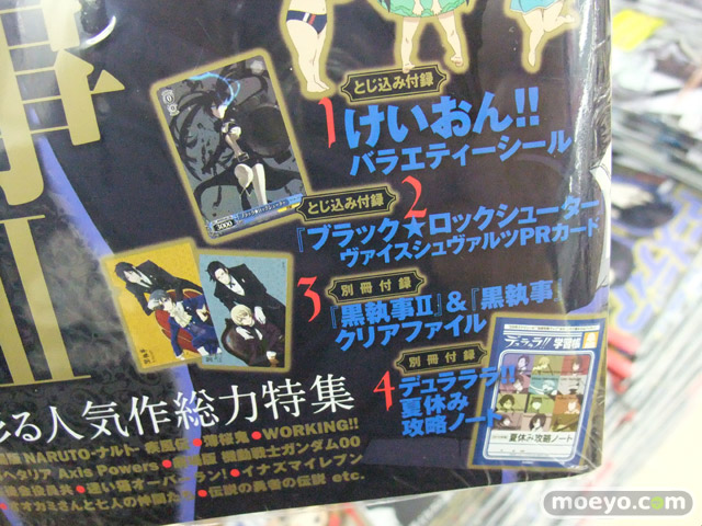 ■ 価格:税込620円 ■ 特典: 別冊第1付録 リバーシブルクリアファイル●黒執事●黒執事Ⅱ 別冊第2付録 夏休み攻略ノート●デュラララ!! 貼りこみ付録 バラエティーシール●けいおん!! とじこみ付録 ヴァイスシュバルツPRカード●ブラック★ロックシューター 応募者全員サービス『黒執事Ⅱ』表紙図書カード |