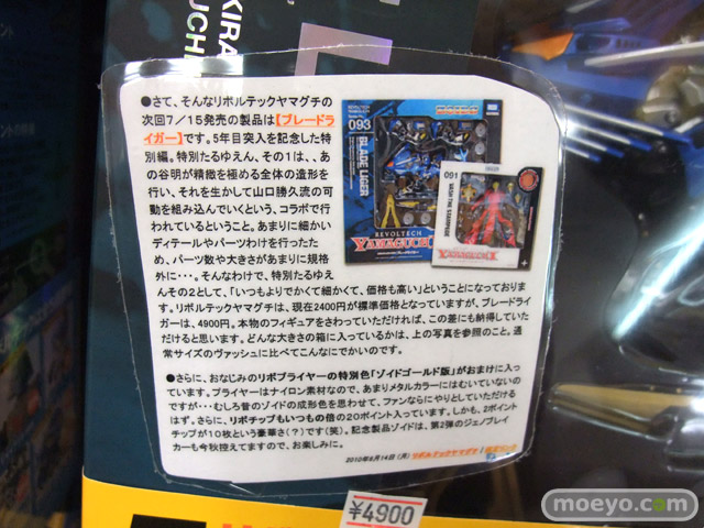 ■ 商品名:「リボルテックヤマグチ No.096 ZOIDS ジェノブレイカー」(AM) ■ 発売元:海洋堂 ■ 仕様:塗装済み可動フィギュア ■ サイズ:全長約250mm 全高約160mm ■ 原型制作:山口勝久氏 ■ 価格:税込6,500円 ■ 発売:2010年9月15日 |