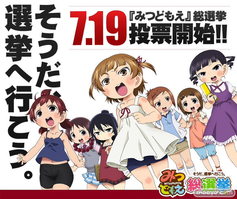 『みつどもえ総選挙』が開催決定!これは、好きなエピソードを投票し、その中から人気トップに選ばれた4エピソードをニコニコ動画にて期間限定無料配信しちゃうというものです!投票受付は7月19日(月)0:00より開始!