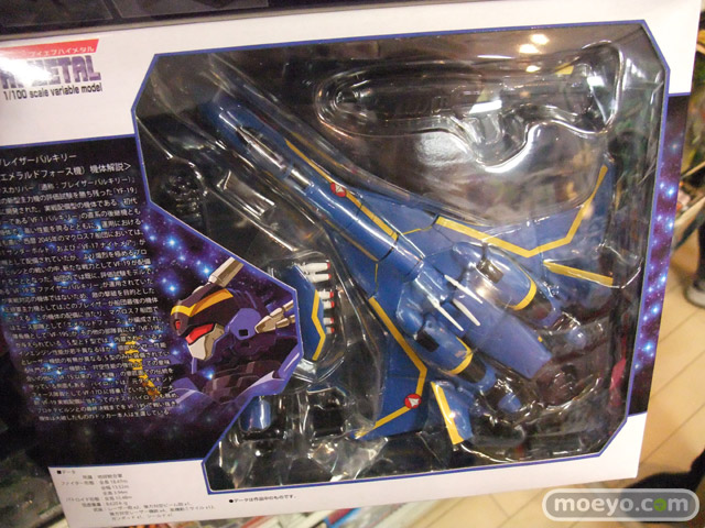「マクロス7」よりVF-19実戦配備仕様が隊長機カラーでHI-METALに登場!ファイヤーバルキリーとは対照的な青いボディに、稲妻を思わせる黄色のストライプが特徴の「エメラルドフォース」隊長機仕様。伝統的な隊長機の特徴を備えた頭部、デルタ形状の主翼、肩アーマーやガンポッドなどVF-19改とは外観が異なる部分を新造した他、脚部の内蔵式ミサイルベイの開閉ギミックを初めて再現!