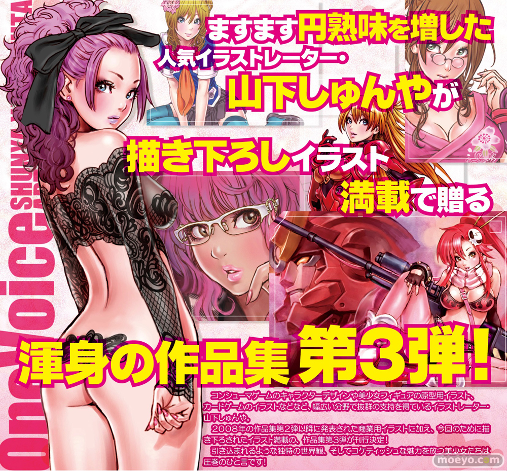 ■ 商品名:「One Voice 山下しゅんや作品集III」 ■ 仕様:A4サイズ 128ページ ■ 価格:税込2,940円 ■ 発売:2010年7月25日 ■ イベント購入特典:WF、コミケ会場にてお買い上げの方に特製描き下ろしメッセージペーパープレゼント |