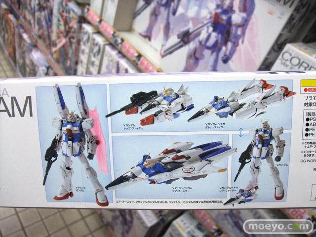 Vダッシュガンダムに装着可能なVコア・ブースターが単品で登場!MG Vガンダム(別売)とあわせれば、Vダッシュガンダムにすることができる。Vコア・ブースター、コアファイター・ディスプレイベース、さらにVガンダム用の各種武装が付属。