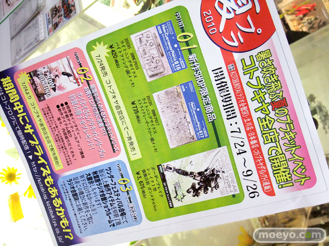 コトブキヤ直営店及び通販のみ取り扱いのオリジナル商品の発売や特典プレゼント等のインストアプラキットイベント「夏プラ2010」が、コトブキヤ各店で本日7月24日~9月26日まで開催!KOTOBUKIYAではWF後に最新サンプル展示も予定!