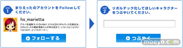 1.Twitterでリボルテック広報担当のまりえったのアカウントをFollowして頂きます。
