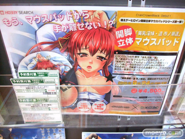 とらのあなAの3F予約コーナーでは、POPに「もう時代は、おっぱいやお尻ではないんだよ!」として、「淫妖蟲・悦 白鳥深琴」等、計4種の股間造形にこだわった?「開脚立体マウスパッド」の予約が開始しています!4種のサンプル画像も掲示!