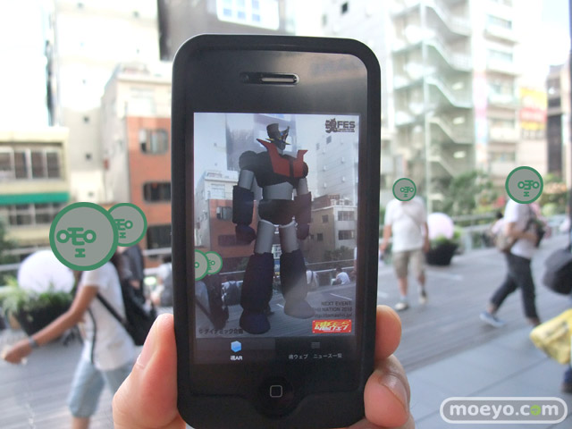 ぷちアキバ情報魂FES会場で専用のiPhoneアプリを使うと見れるAR(拡張現実)「実物大マジンガーZ」はこんな感じでした。