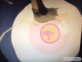 ピンポイントで乳首だけ露出したスク水の乳首を筆プレイ!