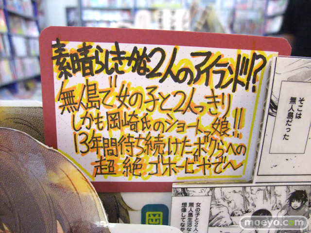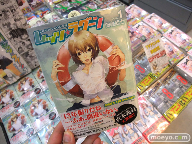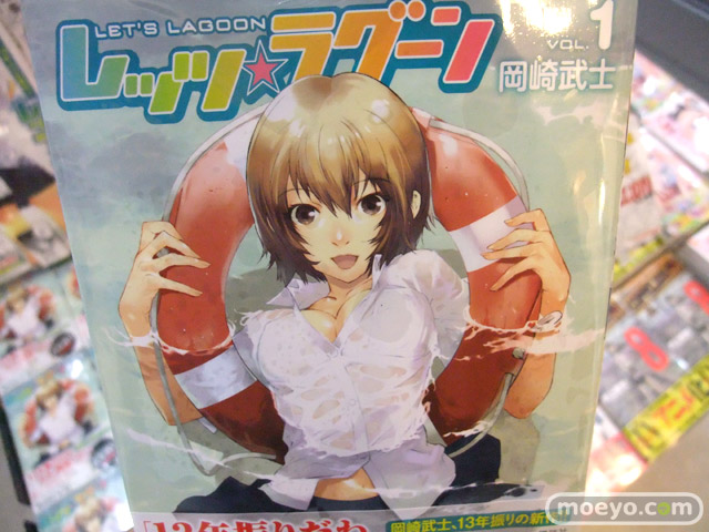 コミック「レッツ☆ラグーン 1巻」が発売!POP等によると「岡崎武士、13年振りの新作!!」というもので、コミックZINのPOPによると『無人島で女の子と2人っきりしかも岡崎氏のショートっ娘!!』等と書かれていました!