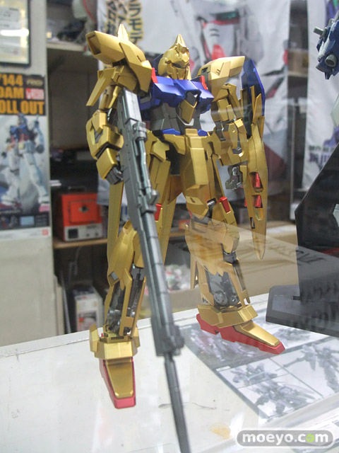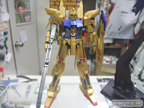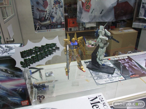 9月9日に発売となった、バンダイ「HGUC MSN-001A1 デルタプラス」の色変え作例が、ホビーシティ4Fで展示されていました。『やられる前にやりました。』という、金色をベースに塗装された作例は、形状的なものも含め、百式にそっくり!