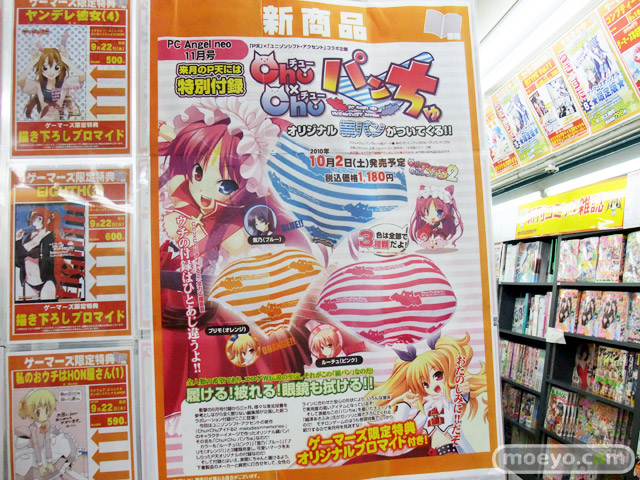 ゲーマーズ本店で、10月2日発売予定の美少女PCゲーム情報誌「PC Angel neo 2010年 11月号」に付属するオリジナル縞パン『Chu×Chu パンちゅ』の、巨大告知POPが掲示開始!下着メーカーと綿密に打合せし、実際に履ける仕様。