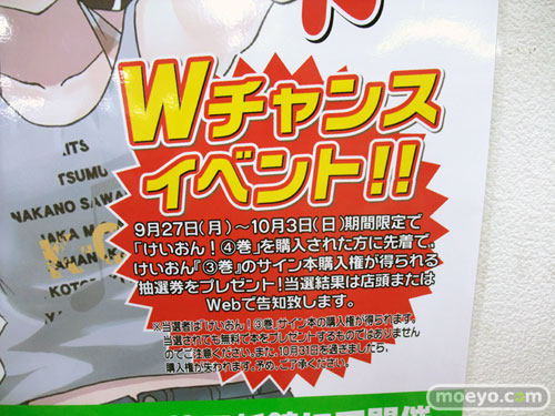 9月27日(月)~10月3日(日)期間限定で「けいおん! 4巻」を購入された方に先着で、けいおん「3巻」のサイン本購入権が得られる抽選券をプレゼント!当選結果は店頭またはWebで告知致します。