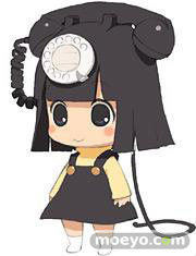 昭和のにおいが残る家の黒電話。人には普通の黒電話に見えるのだが、誰もいないときにこっそりと家の中を動き回ったり、他の電話たちと会話したりする。かかってきた自分の電話のベルに驚いて失敗する事もしばしば。おとなしくて、ちょっとビビリ。(イラスト:田中久仁彦)