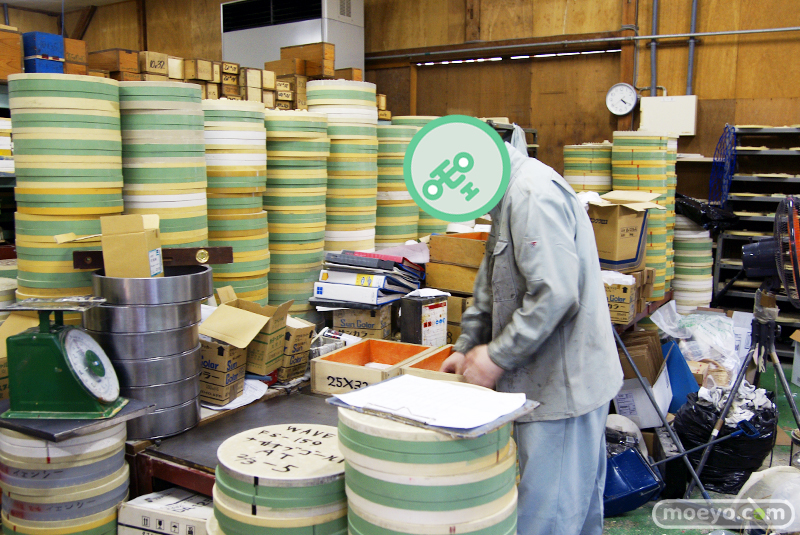 職人さんのまわりにうずたか~く積まれているのは、「遠心注型」用の丸い型。