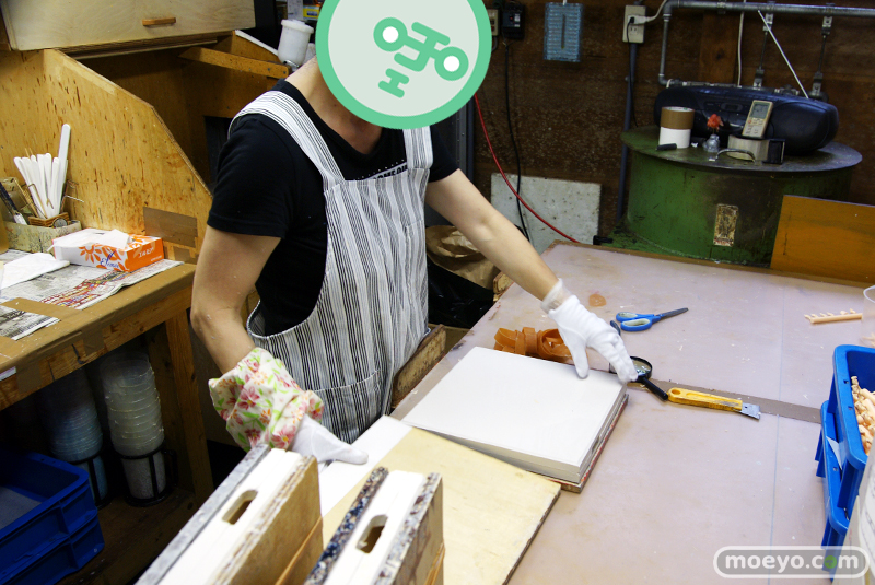 ここで、パーティングラインなどのパーツの仕上がりを左右するという、職人さんの粘土埋めによって制作された、元型を元に次の工程にすすみます!