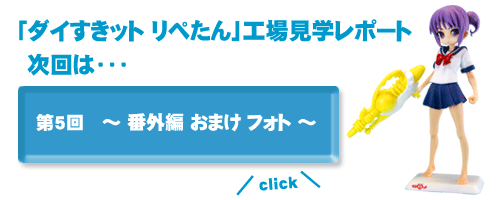 仕上げる工程における技術や研究など、たゆまぬ創意不工夫と努力によって、ニーズへの対応、あるいは品質が維持・向上されているんだなと深く感心させていただきました。「自分は初心者だから」と気後れすることなく、ガレキの世界により一層飛び込んでいくぜ!!と背筋が伸びる思いとでもいいましょうか、襟を正してがんばっていこうとおもいます!!