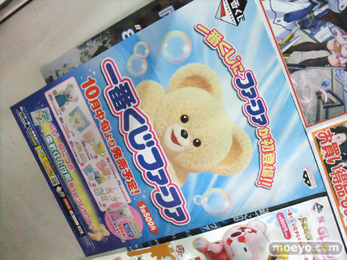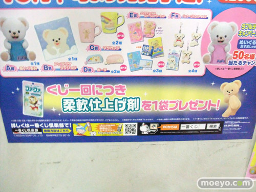 ホビーシティの2F扉にて、バンプレスト「一番くじファーファ」の告知が掲示されていました!まさかこんなアイテムまで一番くじに・・・!POPによると『くじを引いて下さった方には、柔軟仕上げ剤を1袋プレゼント!くじ1回につき1袋もらえるよ!』とも!