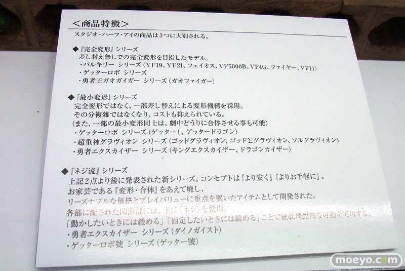 2010年10月1日~3日開催の「TAMASHII NATION 2010 SHINKA 刻まれた魂の歴史」のプレオープニングレセプションにいってきました!こちらでは「ロボット大作戦」ブースにあった、ハーフアイとのコラボアイテムなどをフォトレポで!