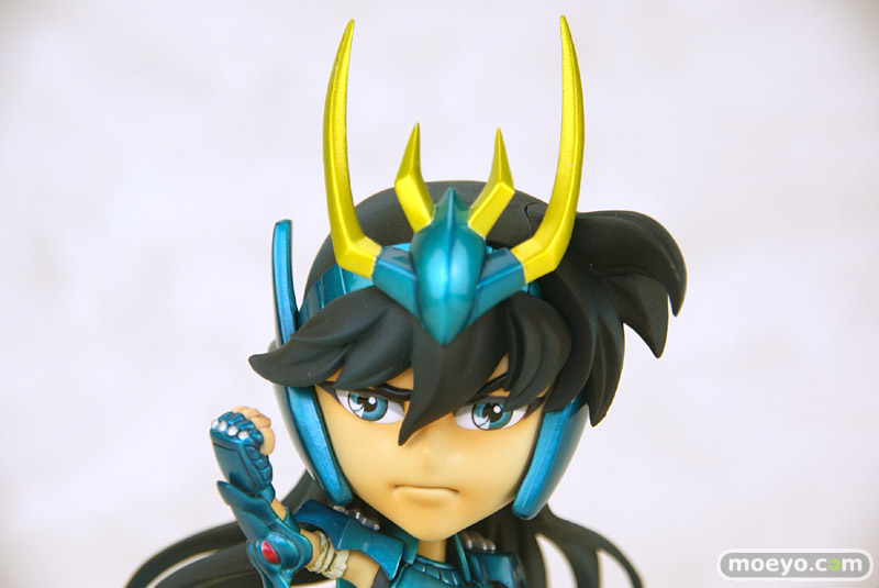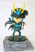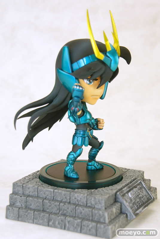 二頭身のディフォルメスタイルでありながら、しっかりとしたデッサンと聖衣の細かな造形がスタチューとしての完成度の高さをうかがわせます。