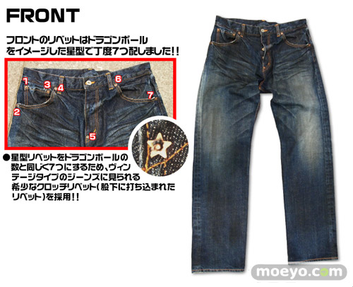 岡山のジーンズ工場で作られた本格派の”亀仙流”デニム!! バックの右ポケットには亀仙流の証、マル亀マークをプリント、左ポケットにはドラゴンレーダーを長年入れていたかのような擦れ加工を施しました!さらにヒップ付近には尻尾を出すために開けていたかのような穴のリペア痕を再現!極めつけはドラゴンボールをイメージした7つあるフロントの星型リベット! 7つにするため現在では希少となった股下のクロッチリベットを採用! ドラゴンボールの世界感を落とし込んだドキドキワクワクなロマンティックなデニムです!