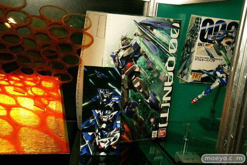 「2010 第50回 全日本模型ホビーショー」のバンダイブースでは、バンダイ「MG 劇場版 機動戦士ガンダム00 ダブルオークアンタ」のサンプルが展示!ソードビットの合体・分離ギミック、GNシールドのビット発射形態を新機構等を搭載!